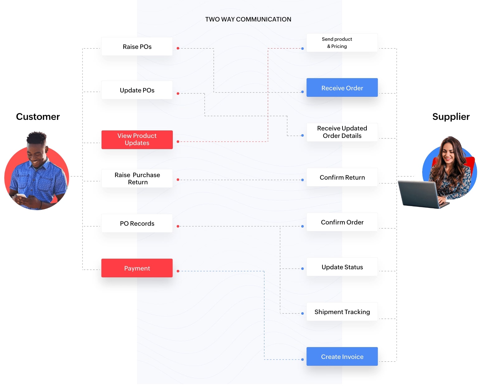 Suppliers can provide real-time product inventory information, update pricing, and send the status, whether the order is picked up, packed, shipped, or delivered.